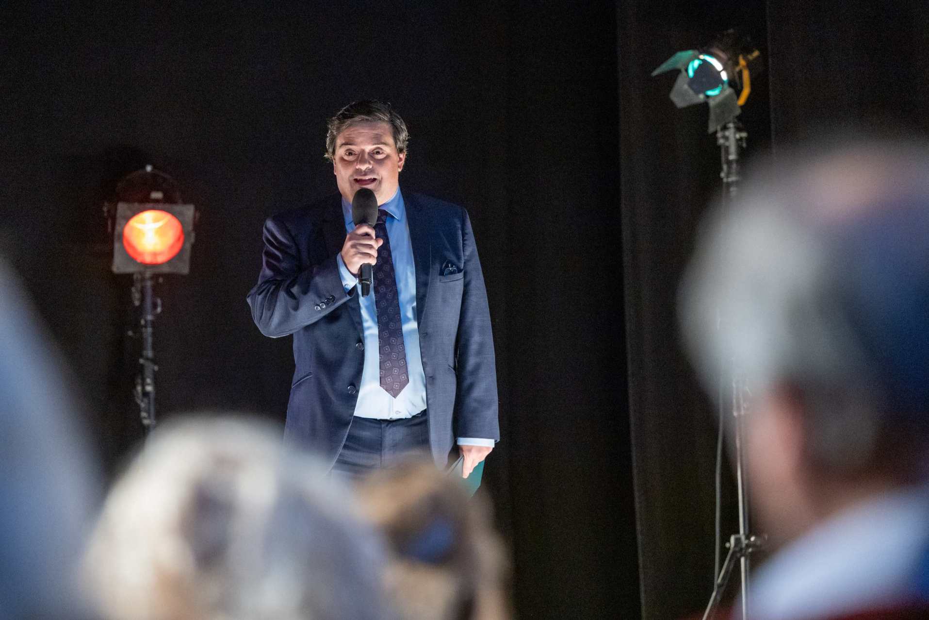 V tu chvíli přichází Petr Dvořák (Jan Dolanský), který na rozdíl od ostatních s technickým problémem počítal. Rychle zjišťuje příčinu a vrací do sálu světlo i klid.