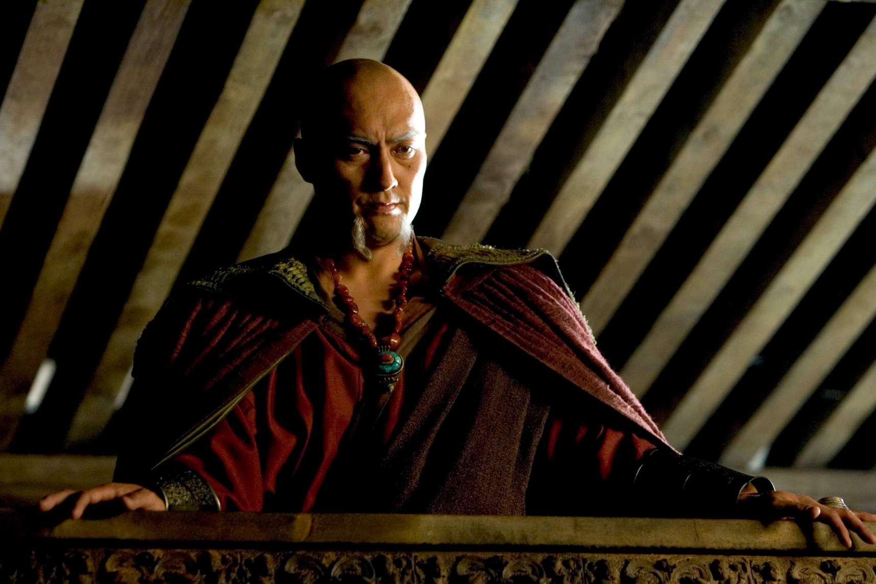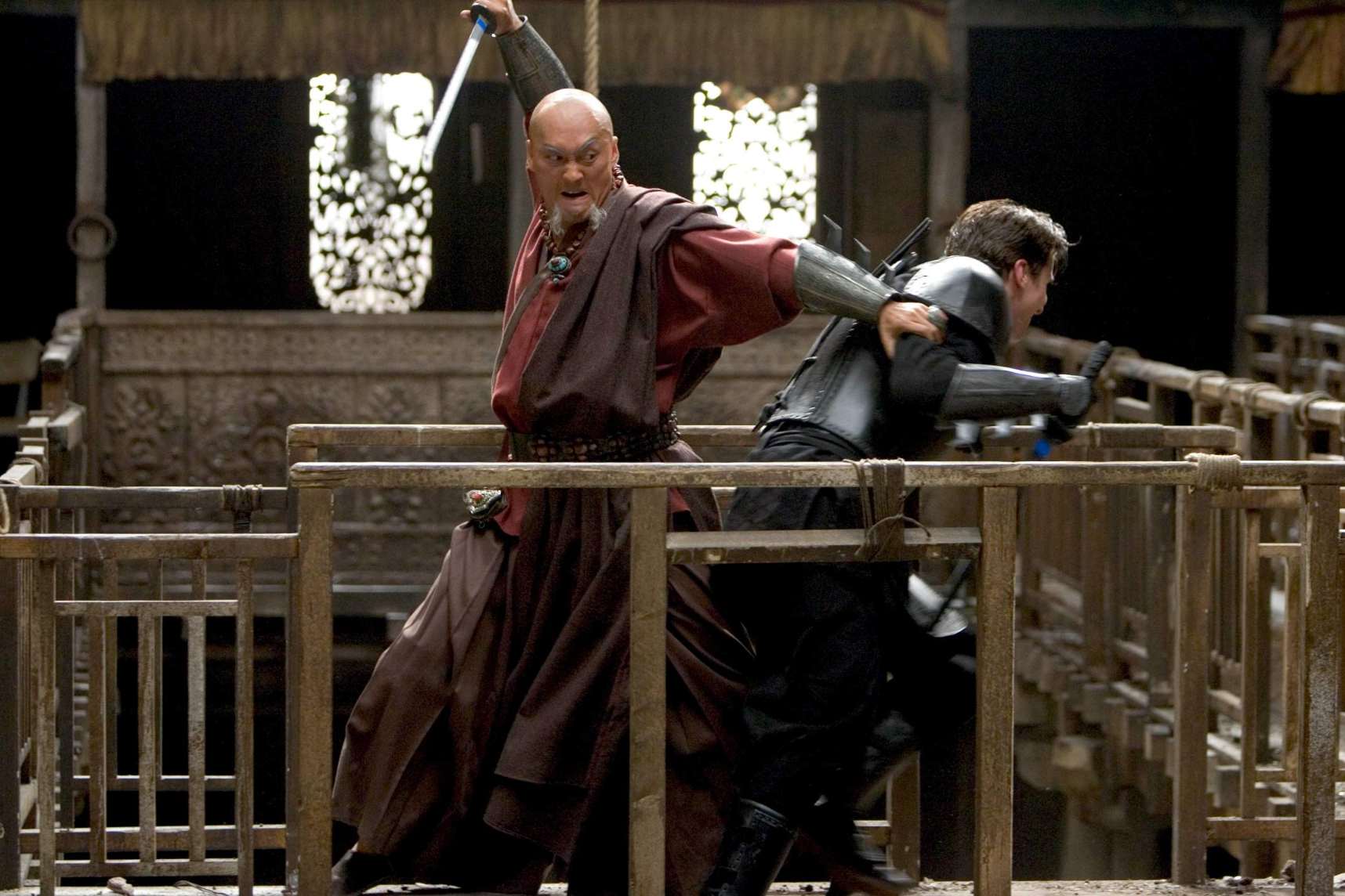 Scénárista David S. Goyer uvedl, že bylo záhodno, aby si diváci Bruce oblíbili už na počátku jeho cesty, tedy než přijme batmanovskou masku. To zahrnovalo i pořádnou akční scénu, proto vznikla pasáž s útěkem z chrámu a ledovým sjezdem.