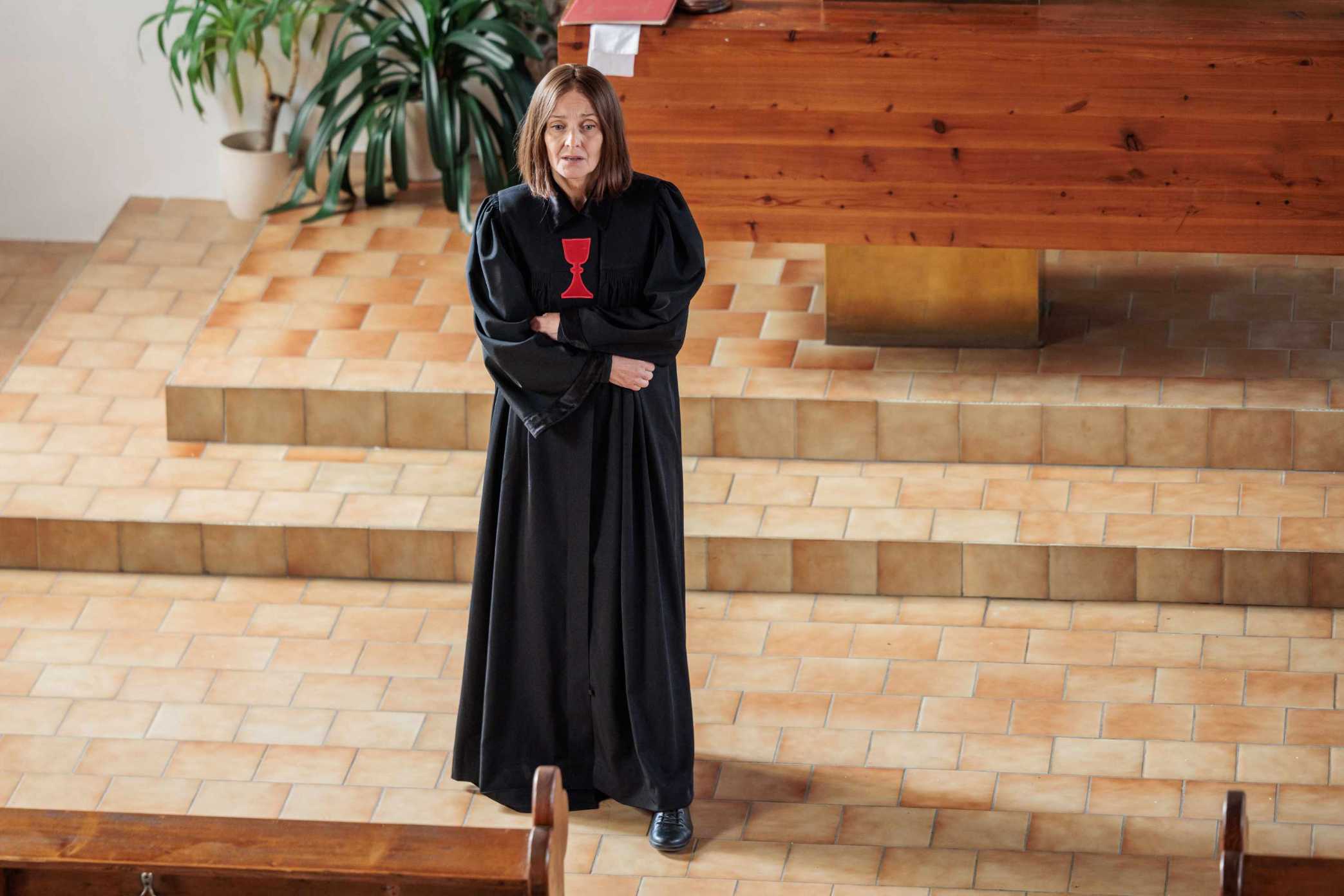 Paralelně s tímto rodinným zklamáním graduje osobní drama v místní farnosti. Farářka Svatava (Veronika Žilková) přestává zvládat obrovský tlak i vlastní vyčerpání. Od Moniky (Zuzana Zlatohlávková), dostane přírodní kapky. Duchovní je nejdřív odmítá, posléze je však přece jen vyzkouší. Během mše však najednou začne nesouvisle mluvit a začne se jí motat hlava. Všichni lidé v kostele si toho záhy všimnou a rázem znejistí. Nabízenou pomoc i možnost svěřit se duchovní sveřepě a nekompromisně odmítá.