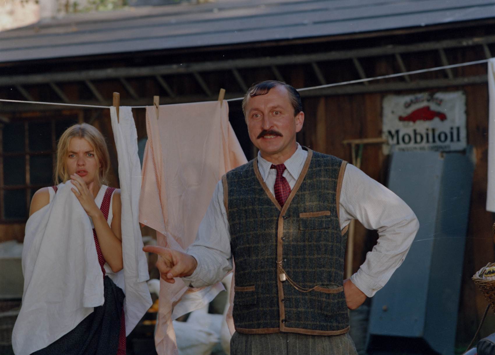 Jedna scéna se opakovala několikrát a pan Bajza v podání Oldřicha Navrátila během ní trefil svého syna Petra Bajzu alias Adama Nováka několikrát vedle. Ten pak druhý den chodil a statečně ukazoval tato „nechtěná jelita“.