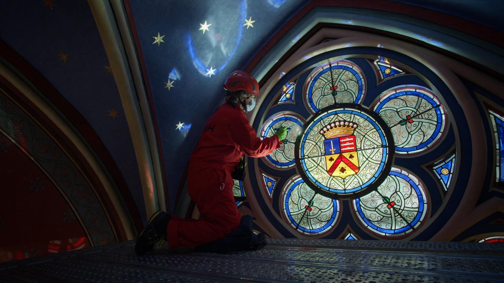 Při rekonstrukci katedrály nejde jen o kamenné zdi a dřevěné krovy. Důležitou roli hraje i obnova jedinečné atmosféry, kterou katedrála vždy měla. Okenní vitráže, které naštěstí přežily, musejí být pečlivě vyčištěny od usazenin a sazí, aby znovu zářily barvami.