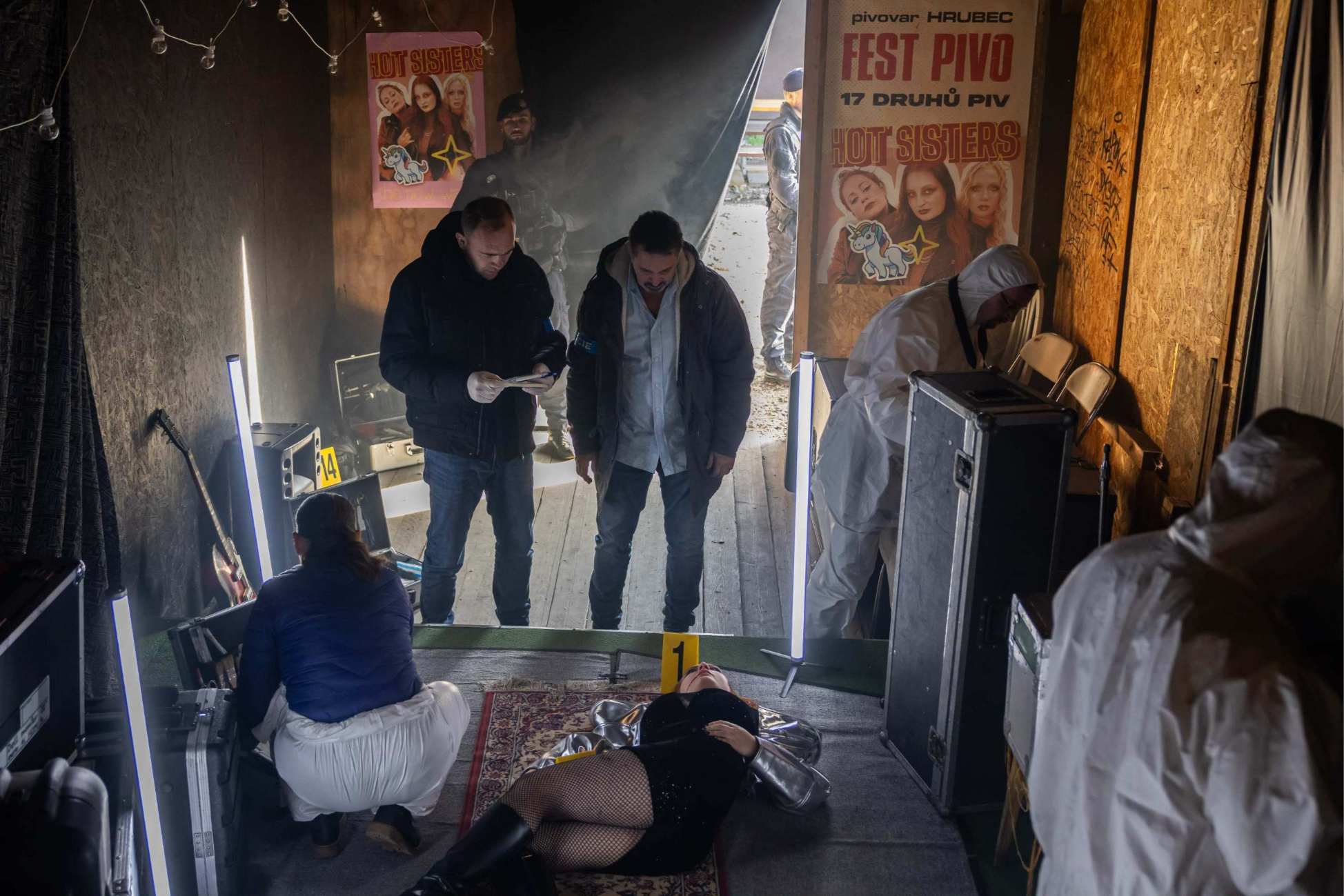 Případ začíná dramaticky – během vystoupení na veřejné slavnosti padne k zemi členka kapely Magda. Nikoli vyčerpáním, ale v důsledku bodného zranění. Na první pohled nepochopitelný čin, ke kterému došlo před očima publika, se začne brzy vyjasňovat. Scéna činu není tak veřejná, jak se zdá – část prostoru je vyhrazena jen členům týmu. To vyšetřovatelům zúží okruh podezřelých.