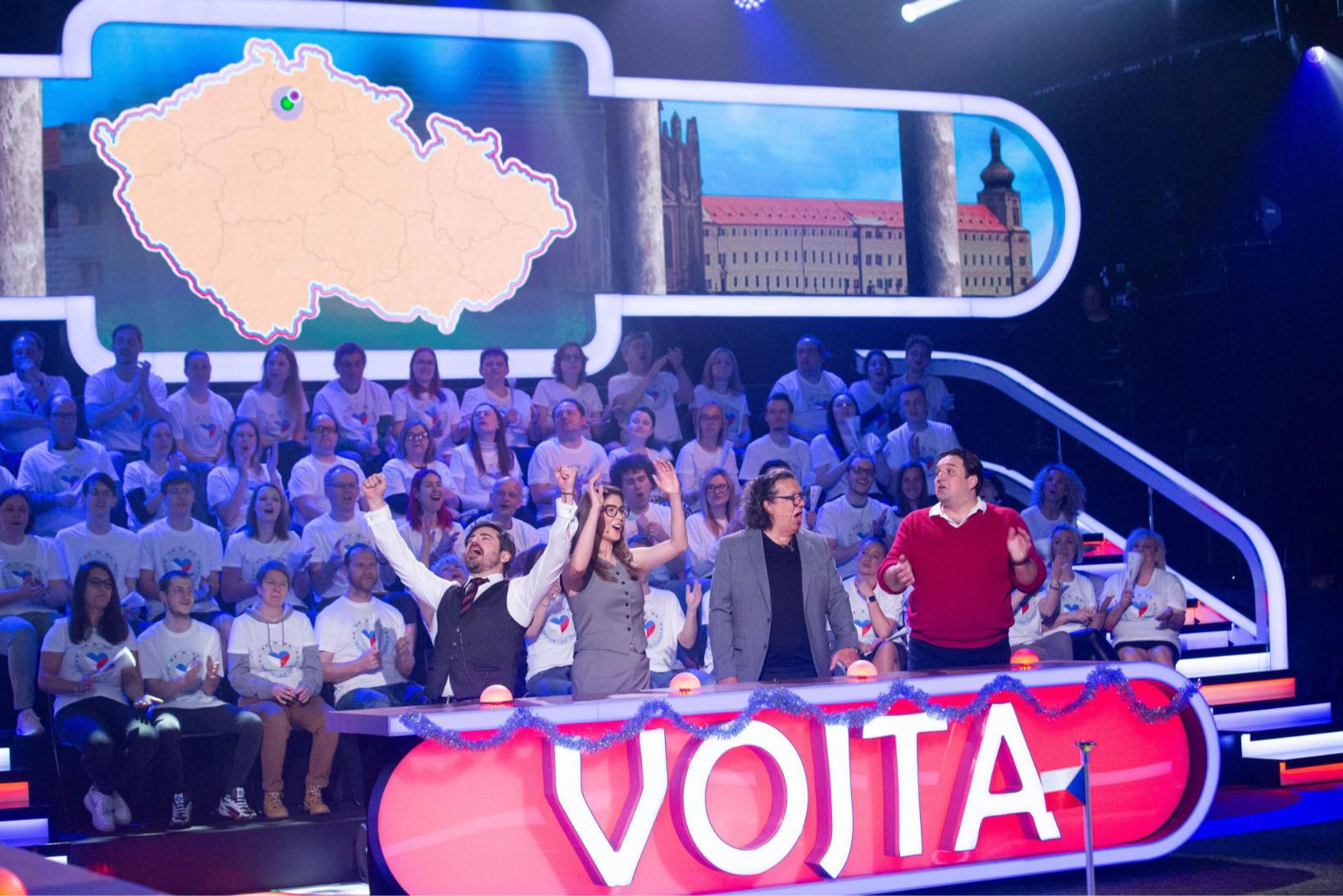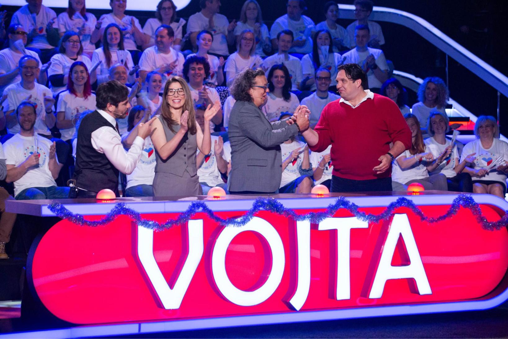 „Mě to nestresuje,“ ujistila ho s lehkým rýpnutím jeho partnerka Sara. „Naopak na nás s Richardem je ten tlak ještě mnohem větší,“ snažil se odlehčit situaci operní pěvec Adam Plachetka, který spolu s Richardem Genzerem dotvořili Kotkův soutěžní tým. „Richardu Genzerovi my u štědrovečerní tabule prostíráme ten talíř navíc, je to takový ten nečekaný host, který ale vždycky přijde a sežere vám celou káď kaprů a mísu bramborového salátu,“ poznamenal na adresu Genzera Vojta.
