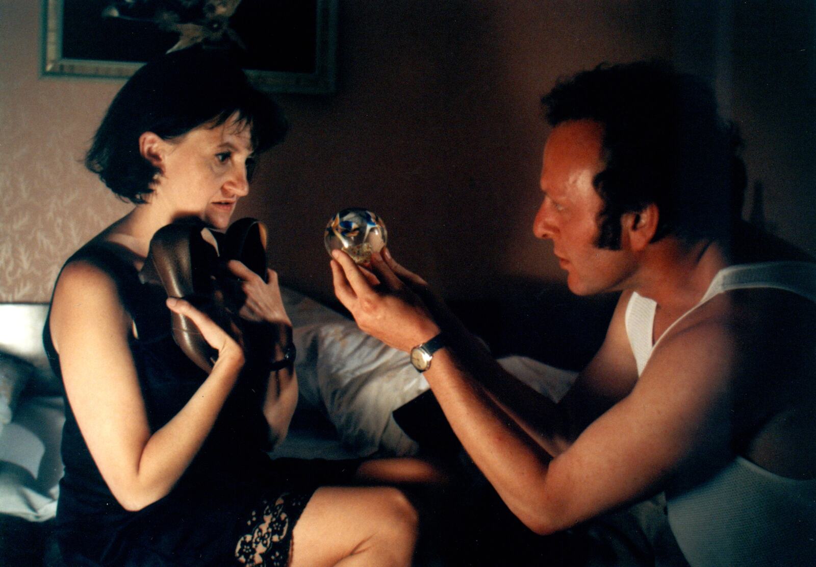 Jaroslav Dušek byl znám svou improvizační dovedností. Okamžité nápady si nenechával pro sebe, současně ale odrovnal polovinu štábu. „Došlo na scénu, kdy Saša s Evou vypijí láhev, tančí, odejdou do ložnice a pár teček. Protože mě zajímalo, co všechno tam má být, ptala jsem se, co to znamená. Kam chtějí zajít. Dušek jednoduše prohlásil, že kam až je pustim. Ten den jsem si vzala dvoje spoďáry a od Simonky ještě stahovačky. Nevim, jak jsem je na sebe natáhla, protože je pak museli rozstřihnout,“ říká ke scéně Eva Holubová.