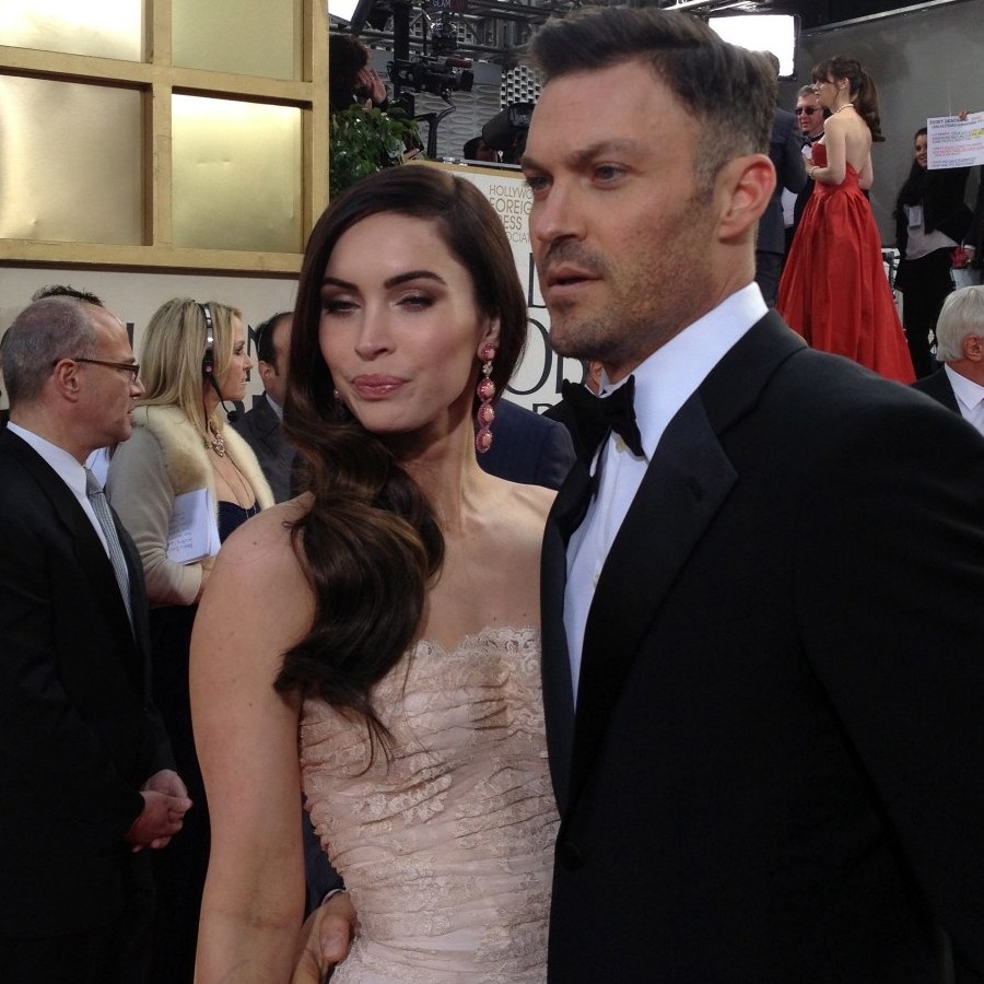 Její outfit byl jedním z nejodvážnějších, jaké Megan v poslední době předvedla. Korzetové šaty zdobené červenými detaily měly odhalená záda i vysoký rozparek. Hlavním prvkem byl právě korzet s pramínky připomínajícími kapky krve, který podtrhoval hereččinu kyprou postavu.
