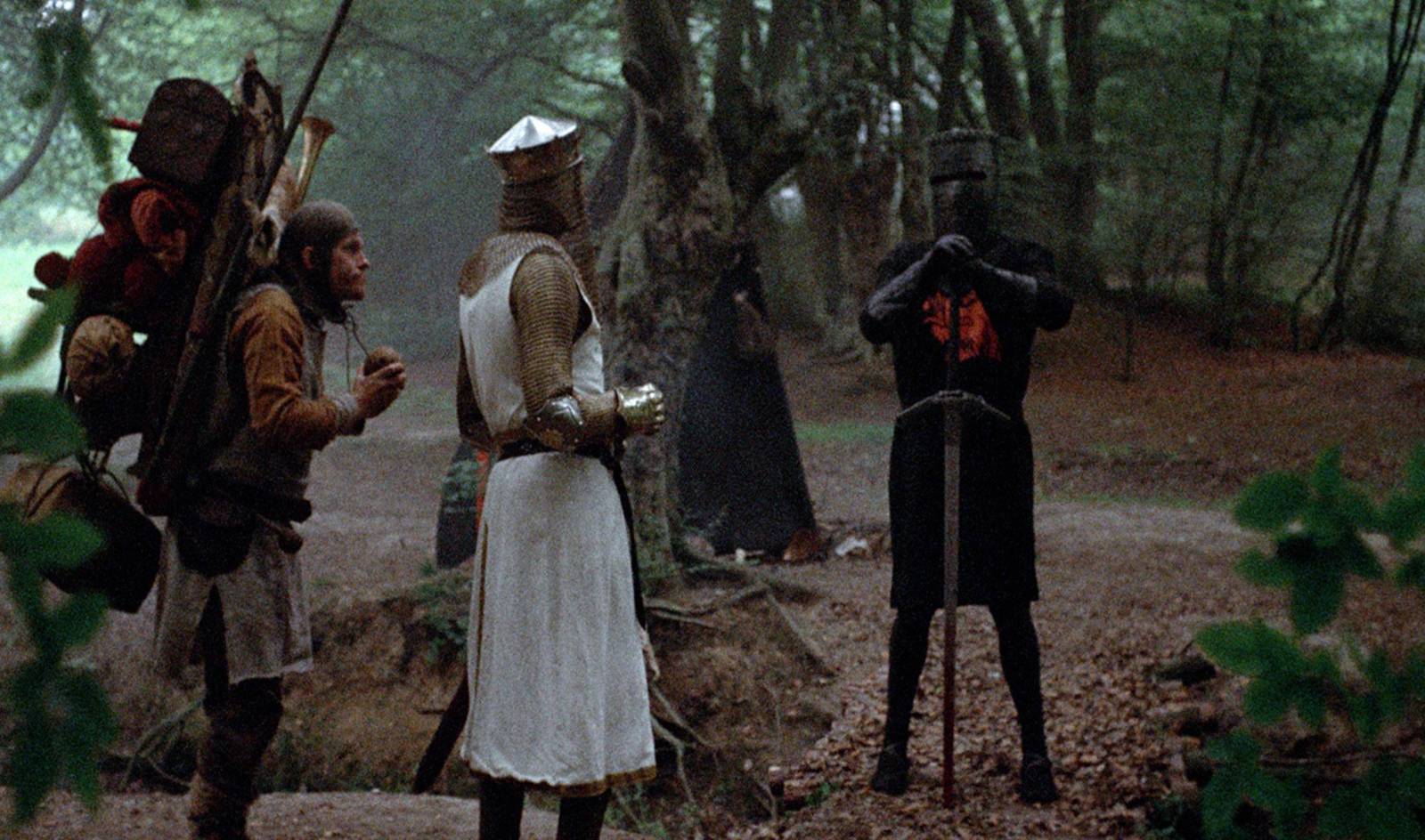 Nedostatek financí se projevil hned v úvodu. Scénář počítal s majestátními příjezdy rytířů na koních, ale produkce si nemohla dovolit pronájem a pojištění skutečných zvířat. Řešení, které se stalo nejikoničtějším vtipem celého snímku, vzniklo z čisté nutnosti. Herci poskakovali pěšky a jejich sluhové za nimi mlátili o sebe polovinami kokosových ořechů, čímž imitovali zvuk kopyt.