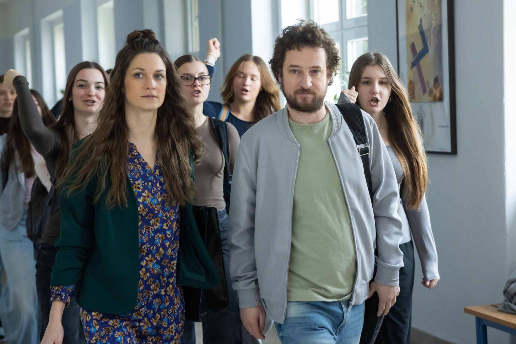 Když se s úderem poledne hromadně vyvalí ze tříd a se slovy „Máme toho dost!“ postupně odchází, nemůže se to obejít bez pozornosti ředitelky. Soňa (Lucie Vondráčková) je rudá vzteky. „Tohle vám neprojde. Nikomu!“ vykřikuje na chodbě.