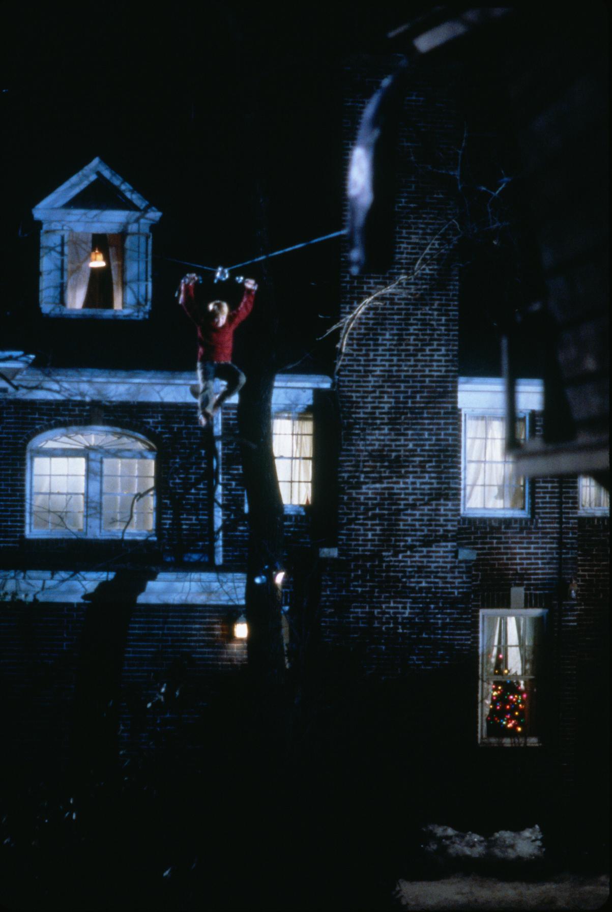 Lupiči se zkouší dostat z domu pomocí lana vedoucího z bunkru. Kevin jim ho během šplhání přestřihne a oni narazí do cihlové zdi. Pozornému oku ovšem neunikne její jasné prohnutí.