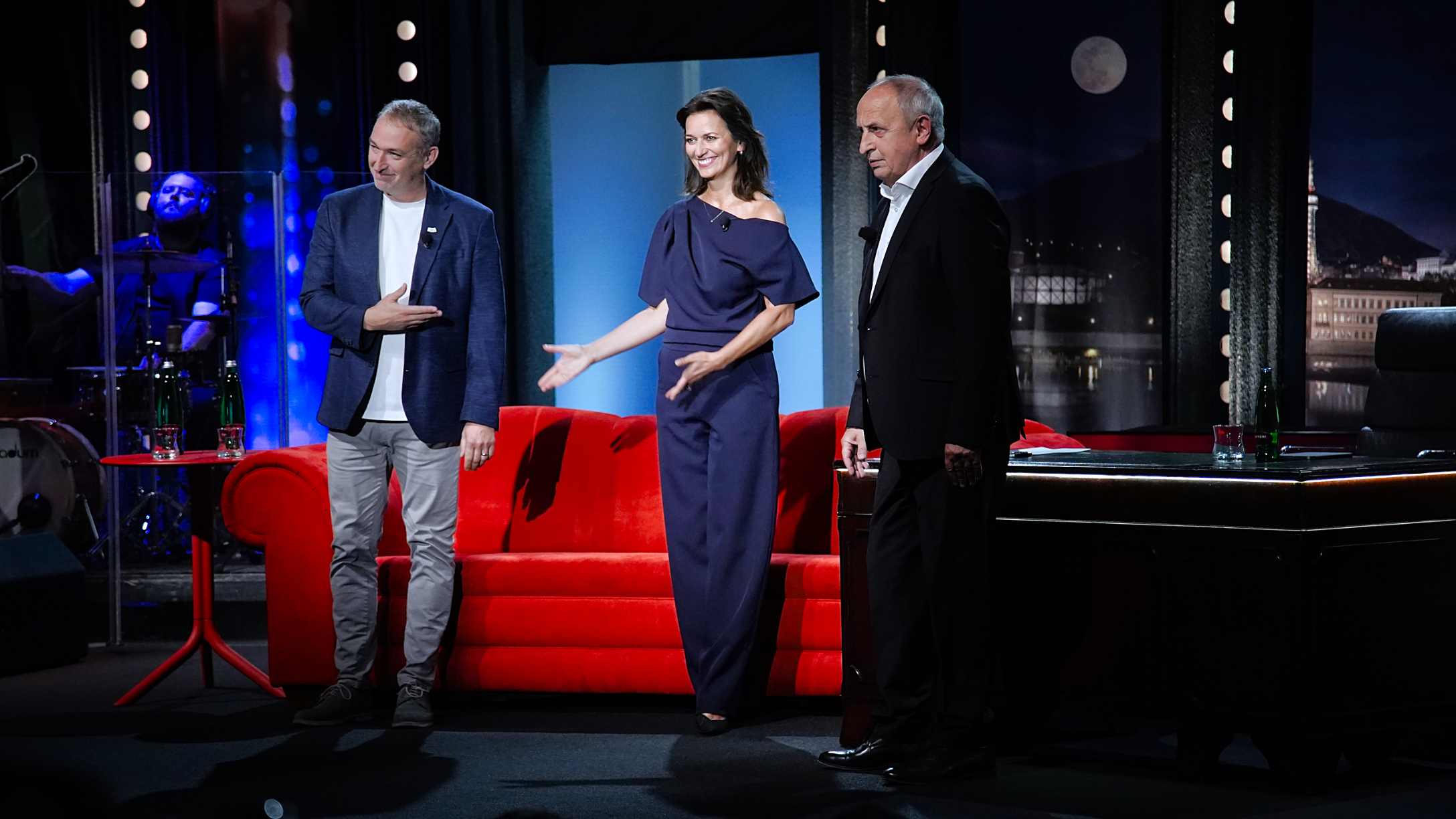 Druhým hostem večera je Miroslav Etzler, který aktuálně hraje v novém seriálu Polabí. Zajímavostí je, že v něm tvoří pár se svou bývalou partnerkou Vilmou Cibulkovou. „Když mě oslovili, měl jsem přirozenej úsměv, a pak padlo její jméno. To už jsem se netvářil dobře,“ přiznal herec. Partnerce prý toto obsazení tajil čtyři měsíce.