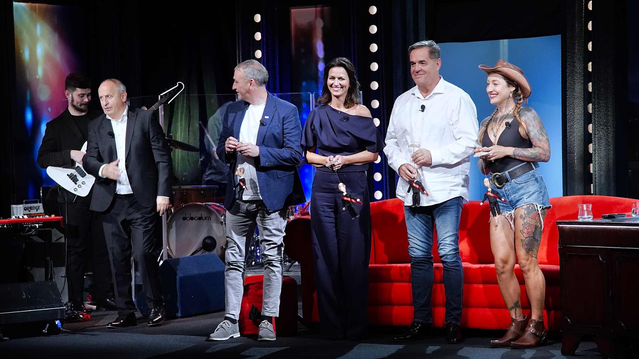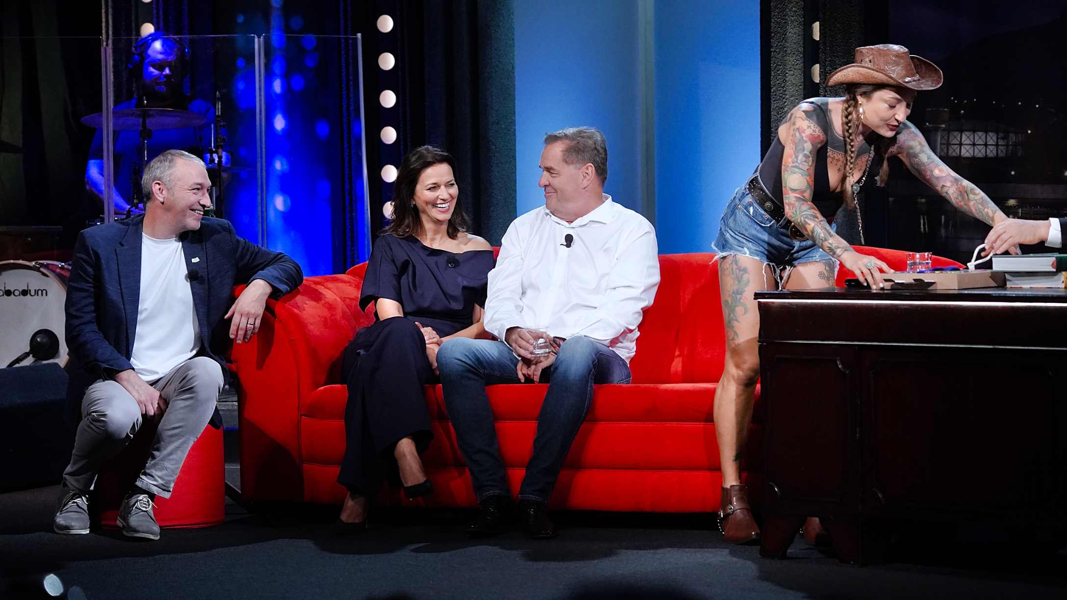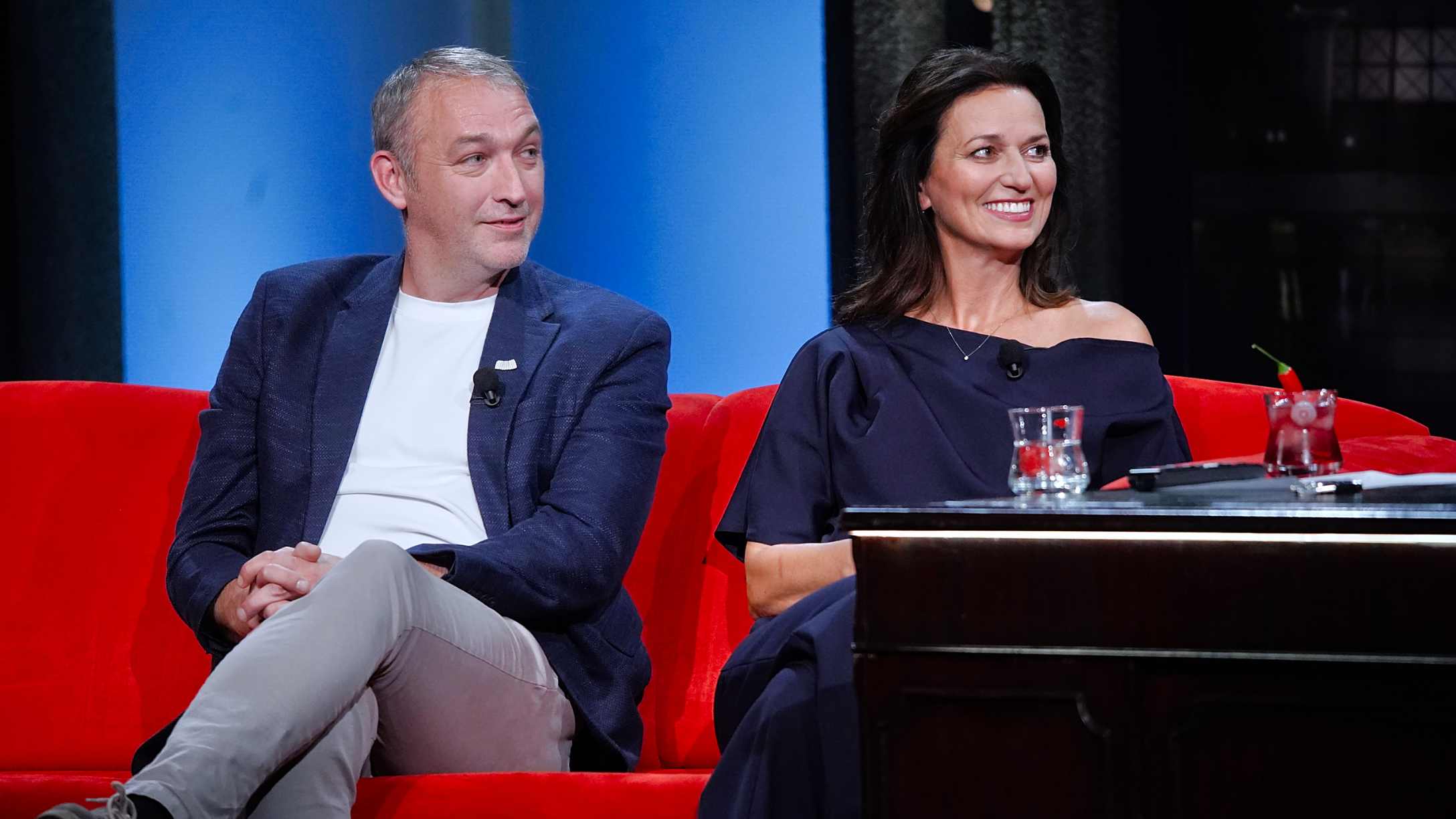 Jako první se na červenou pohovku posadí Adéla Gondíková a Denny Ratajský, kteří spolu hrají ve hře Sladké neřesti v Divadle Lucie Bílé. Gondíková je známá také z pořadu Inkognito a seriálu ZOO – Nové začátky. Ratajský působí jako tanečník a choreograf, aktivně se věnuje stepu.