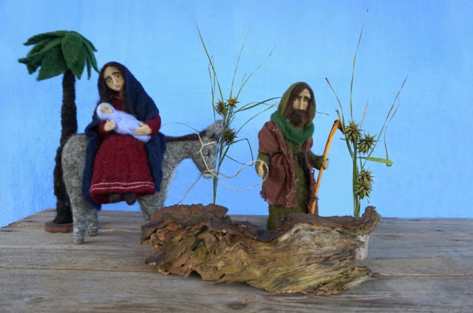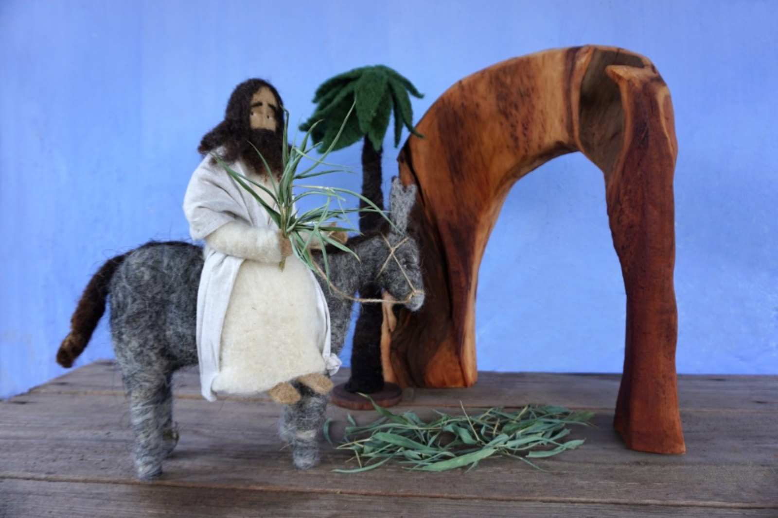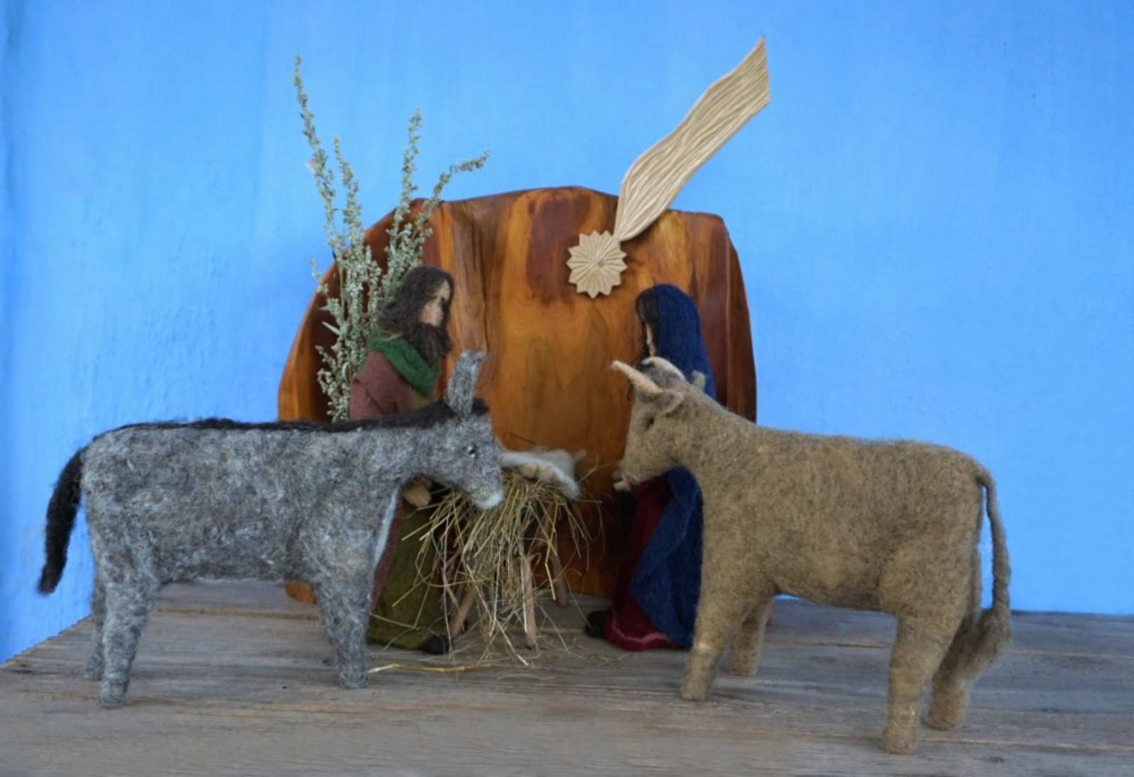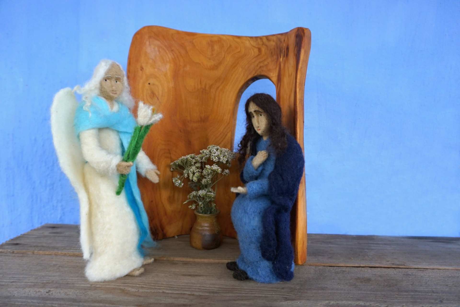 Dioráma z ovčí vlny a květinové dekorace