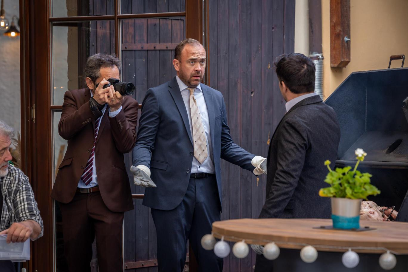 I když svatební den bude jeden, jeho natáčení zabralo celé tři dny. První den jsou všichni dokonce na place až skoro do půlnoci. Natáčejí se večerní a noční scény, kdy jsou kvůli červnové svatbě všichni svatebčané letně a nalehko oblečení. Natáčení ale probíhá při aprílovém počasí, a to teplota každý večer prudce klesá.