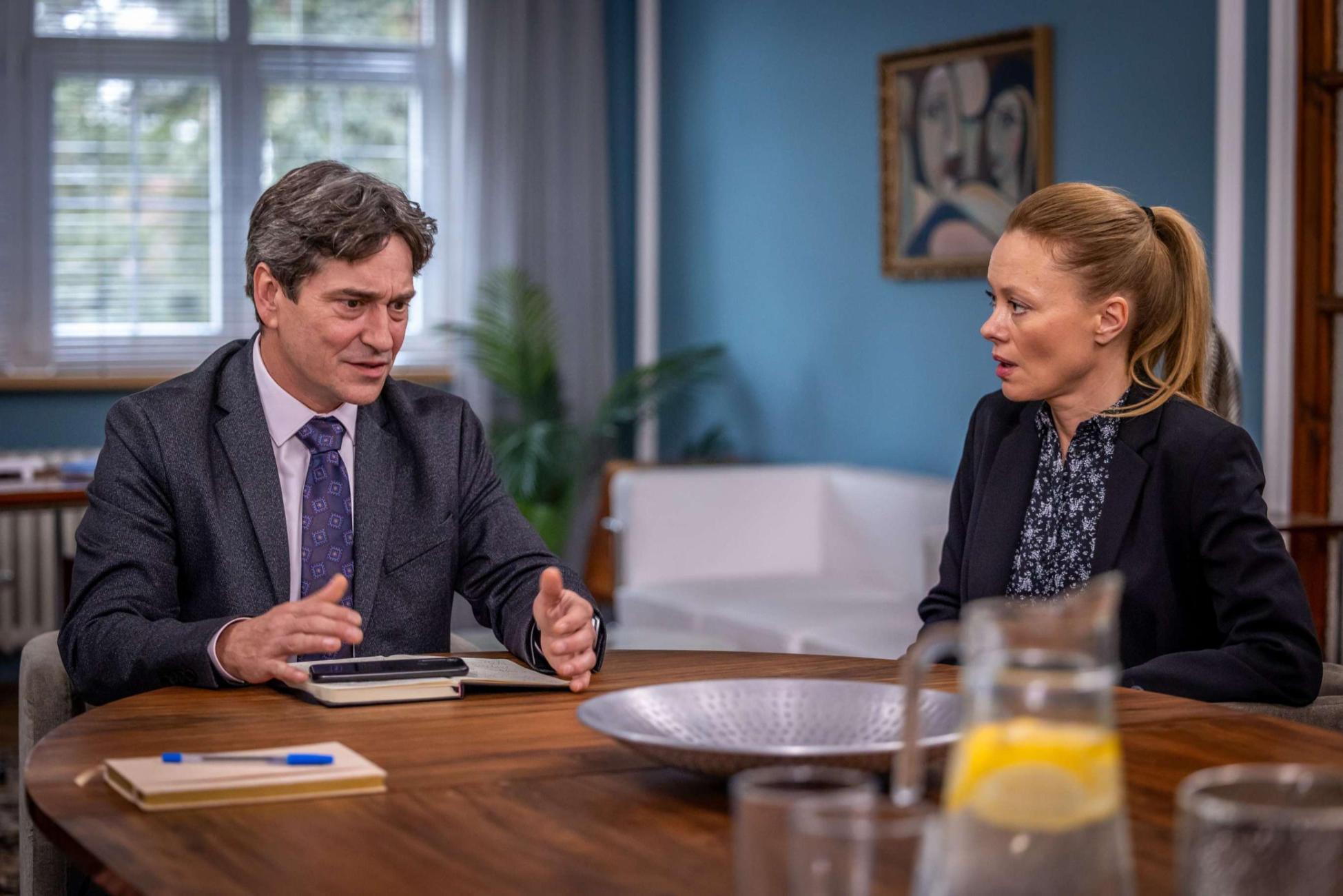 Blanka dorazila se zpožděním, ale Igor to přešel s úsměvem a vstřícným tónem – vždyť má přece dovolenou. Poté se pustil do shrnutí šetření. Vyslechl nejen Hanuškovou, ale i další zaměstnance, včetně Pavlíny Strouhové (Zuzana Páleníková), kterou tajemnice uvedla jako klíčovou svědkyni. Přesto dospěl k závěru, který právě Hanuškovou rozhodně nepotěšil.