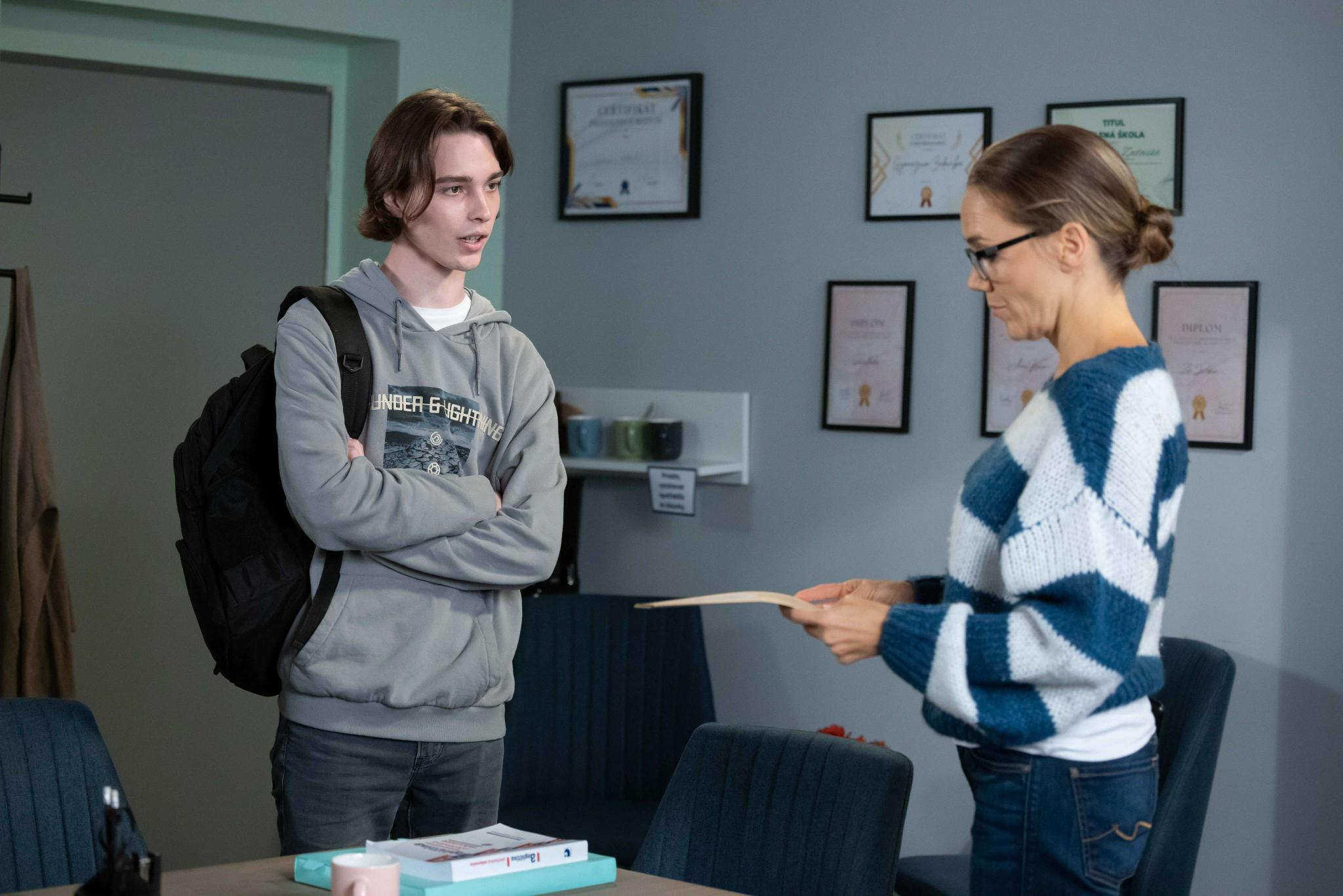 Erik se dokonce pokusil u mámy za Matěje lobbovat, ale Soňa bez váhání vyrukovala s další podpásovkou: „Kdo podle tebe lže? Největší sígr na škole, kterému hrozí vyhazov, nebo já?“ Teď jí to Erik, ač vlastně nevědomky a nechtěně, vrátí i s úroky. Jeho rodiče totiž začnou řešit rozvod a s tím je spojena také péče o syna. A ten se vysloví jasně. To je ale jen začátek…
