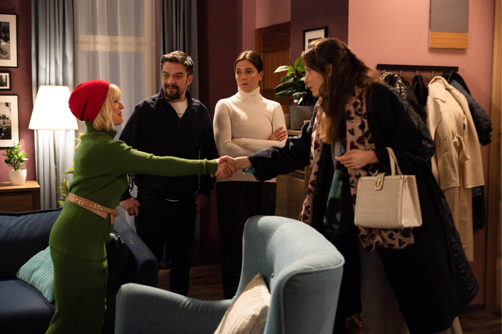 „Nezlobte se, nevybavuji si, že bychom měly domluvenou schůzku,“ tváří se překvapeně Irena Landová (Kateřina Holánová) poté, co do dveří kabinetu vejde Kolářová. „Ne, nemáme. Ale toto nepočká,“ odvětí jí Žaneta tónem nasvědčujícím, že nehodlá jen tak odejít.