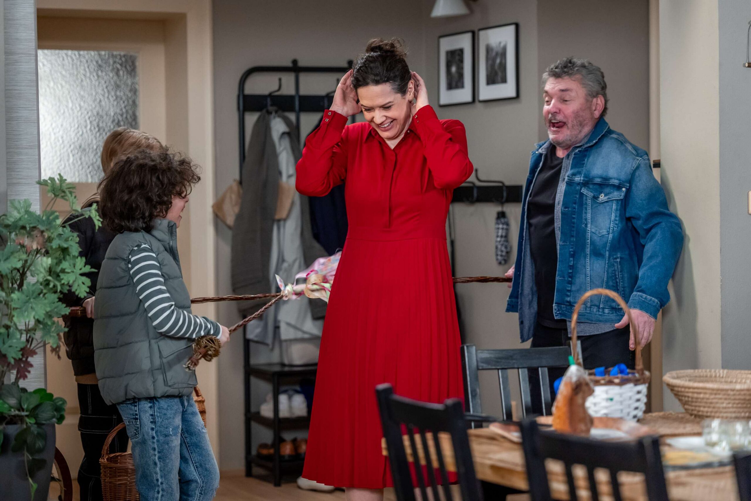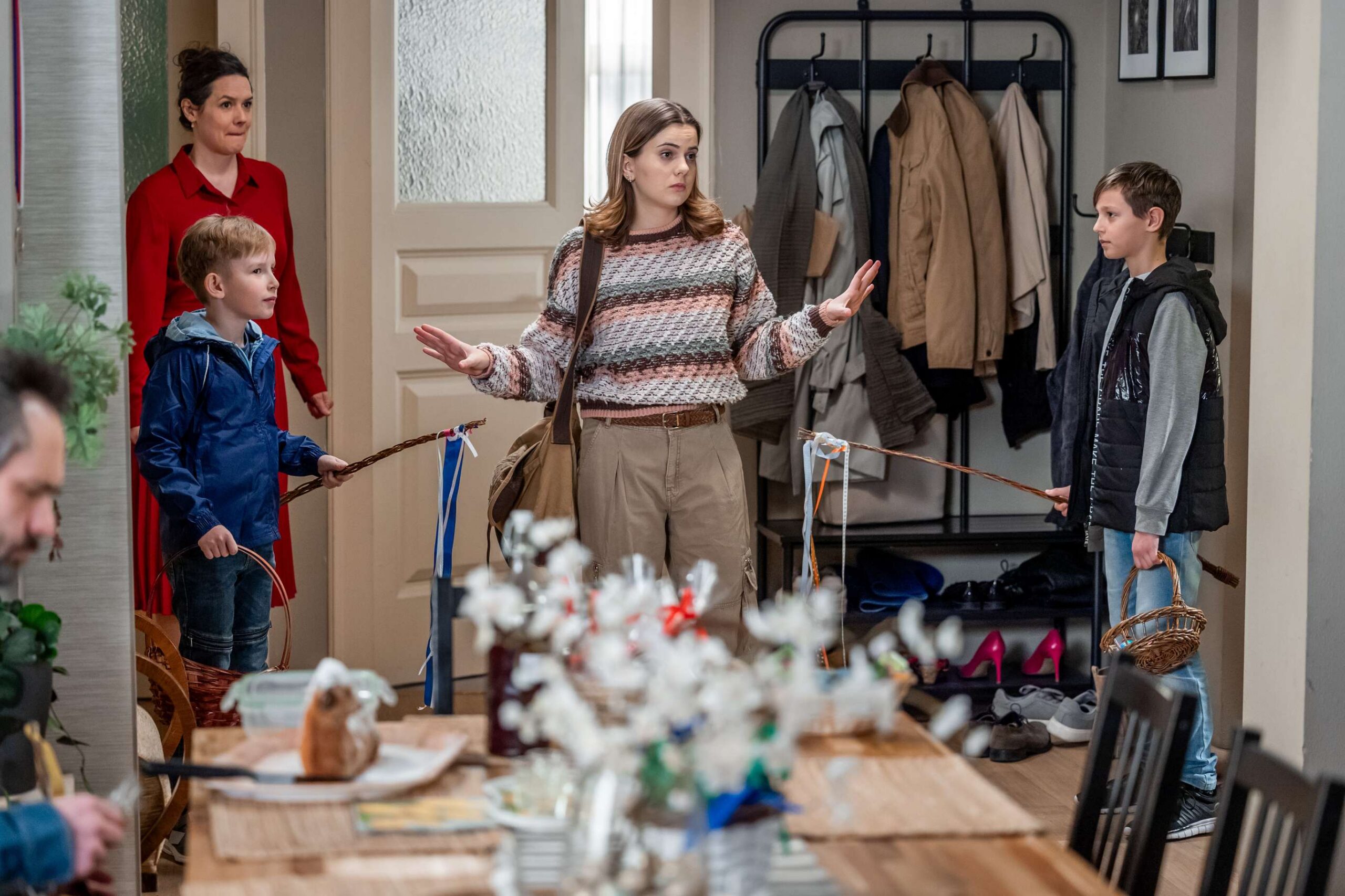 U Klímových se dveře netrhnou. Iva (Hana Baroňová) a Anežka (Karolína Lipowská) si budou připadat spíš jako pořadatelky velikonoční pouti než jako hostitelky. Koledníci přicházeli po vlnách – od malého Vojty (Felix Šrámek) po ostřílené matadory jako Miloš (Jiří Štrébl). A protože Miloš je muž činu, klasickou koledu nahradil tradiční radou: „Chce to jenom trošku umu, přidej ještě litru rumu!“
