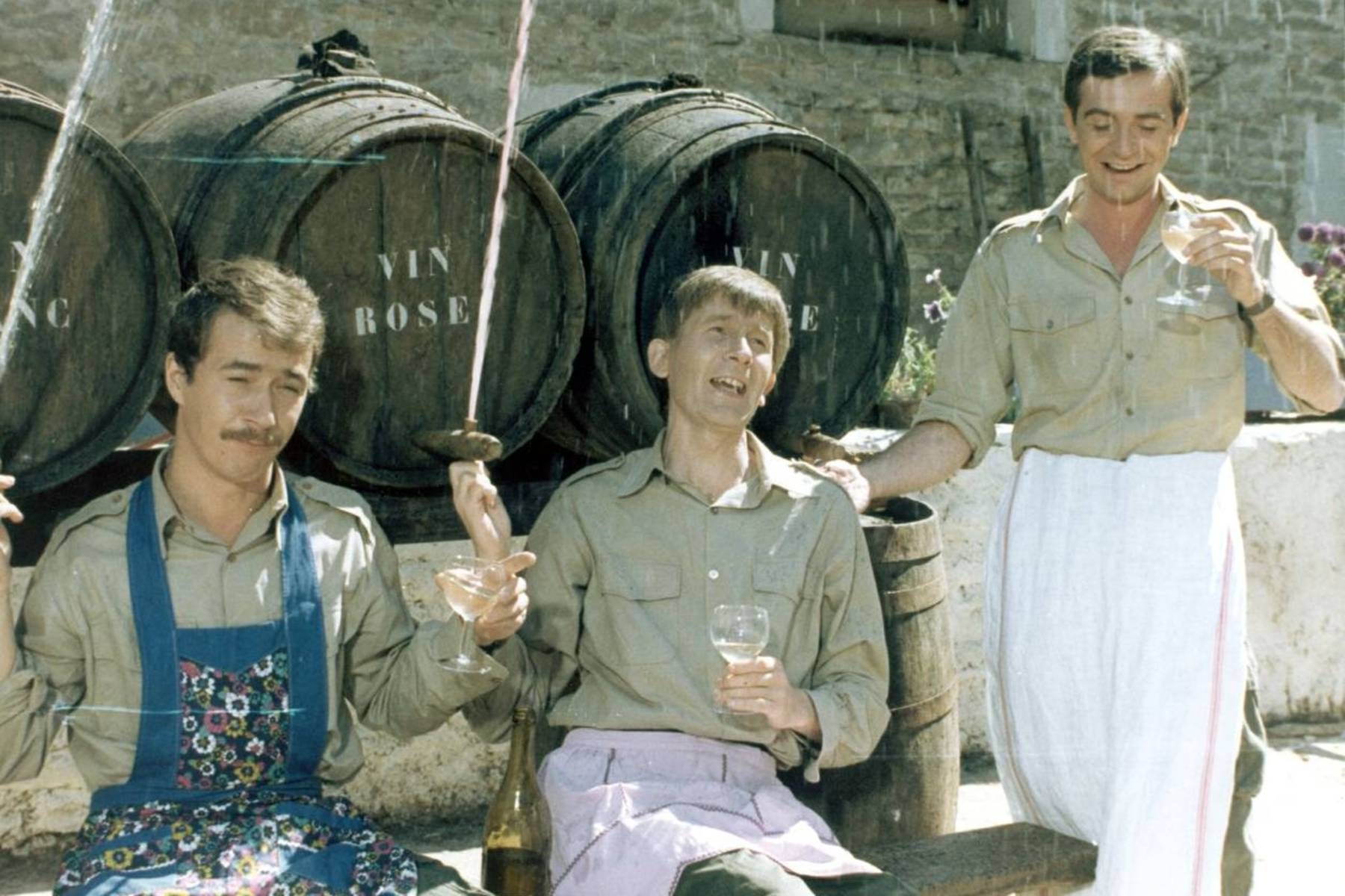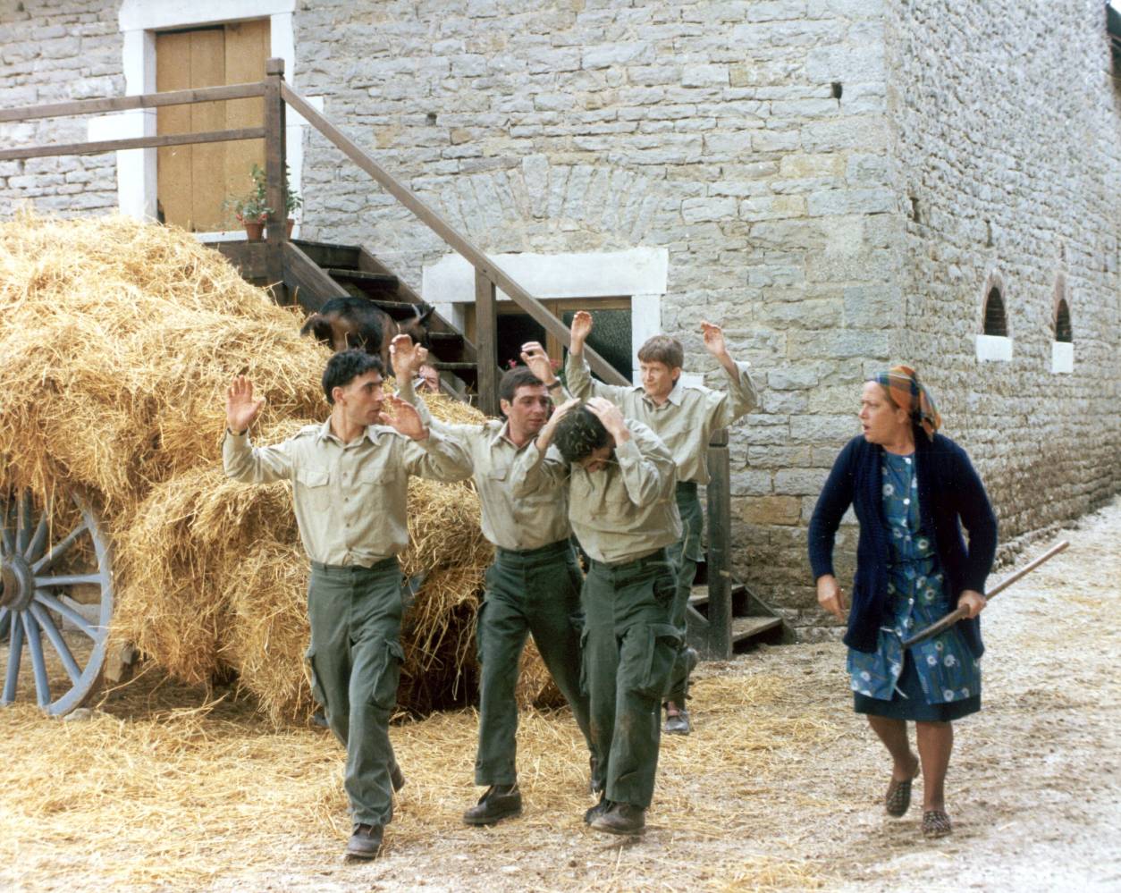 Film Bažanti jdou do boje, který vysílá v neděli a pondělí Nova Cinema, se natáčel v roce 1974 na několika místech v Burgundsku. Konkrétně v Dijonu, na statku u Châteauneuf-en-Auxois nebo u kanálu Bourgogne. Zdánlivě nevinné scény ale nebyly bez rizika. Jean Sarrus si krátce před natáčením zlomil nohu na motorce. Ve scénách, kde pochoduje nebo běhá, ho proto nahradil kaskadér. „Ve filmu je vidět, že mám nohu v sádře, jen ji zakrývá ponožka,“ potvrdil pro web ErreursDeFilms.