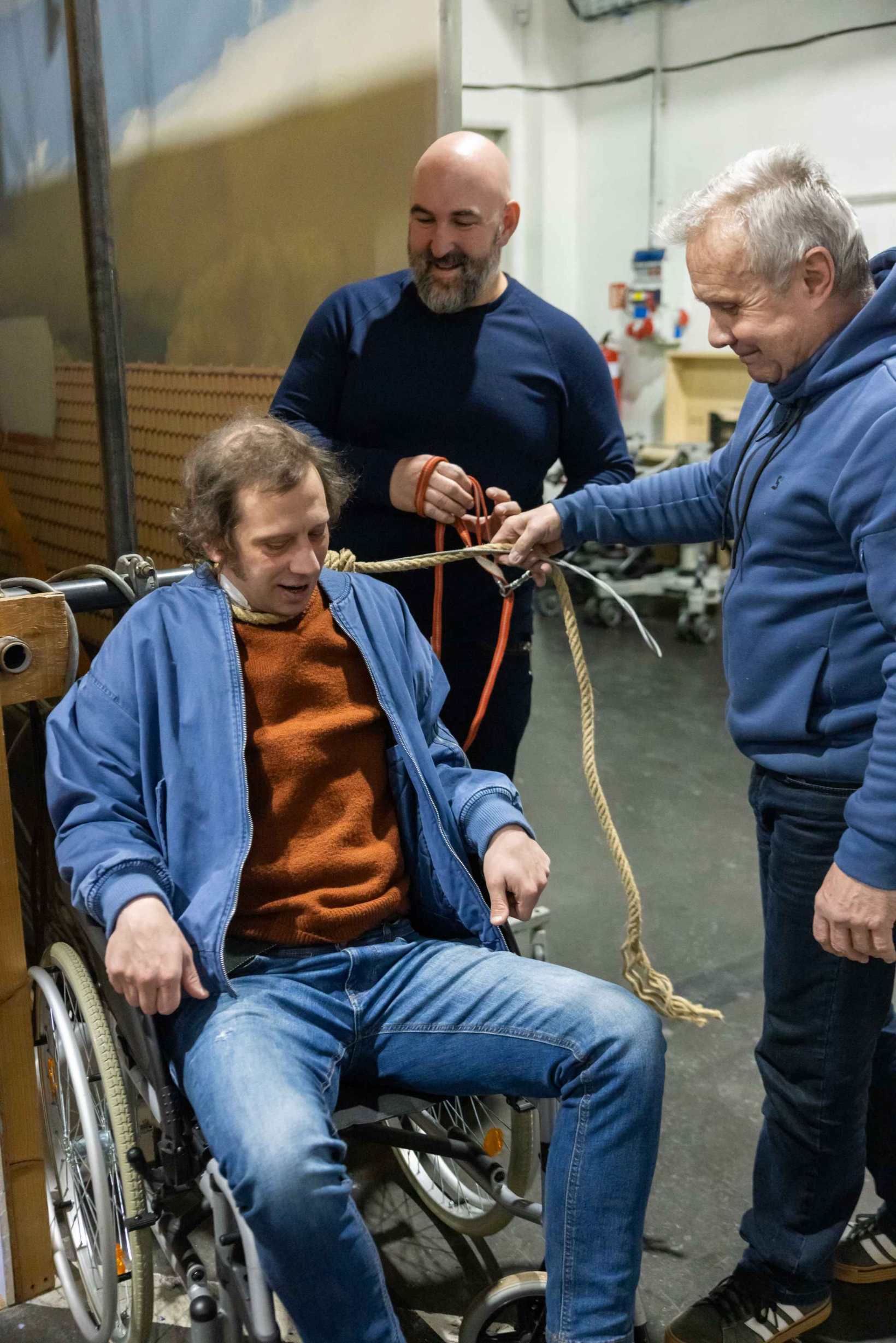 Do podniku v tu chvíli naštěstí vstupují Rosťa (Jiří Černý) s Pavlem (Petr Stach) a okamžitě je upozorní podivná rána. Následný pohled do dílny jim doslova vyrazí dech. Nacházejí Lukáše visícího na provazu po zoufalém pokusu o sebevraždu. Oběšený muž se navíc jakékoliv pomoci urputně brání.